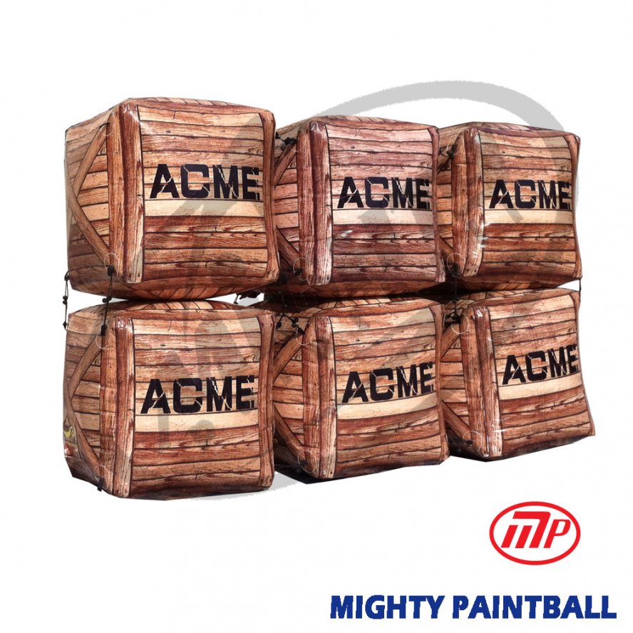 6 stacked crates, assembled by 6 crate shape Smart-BunkerTM Digitally-printed color skin; Made from commercial grade, 23oz gauge, mesh reinforced, double-side coated PVC. Equipped with PATENTED Smart-ValveTM for easy handling of overinflation and auto pressure release, exclusively from Mighty Paintball. Warranty - 12-month limited warranty Online product user guide Digitally printer surface is for overall visual effect only. The surface will show folding and/or scratch lines due to the production process, which is unavoidable.