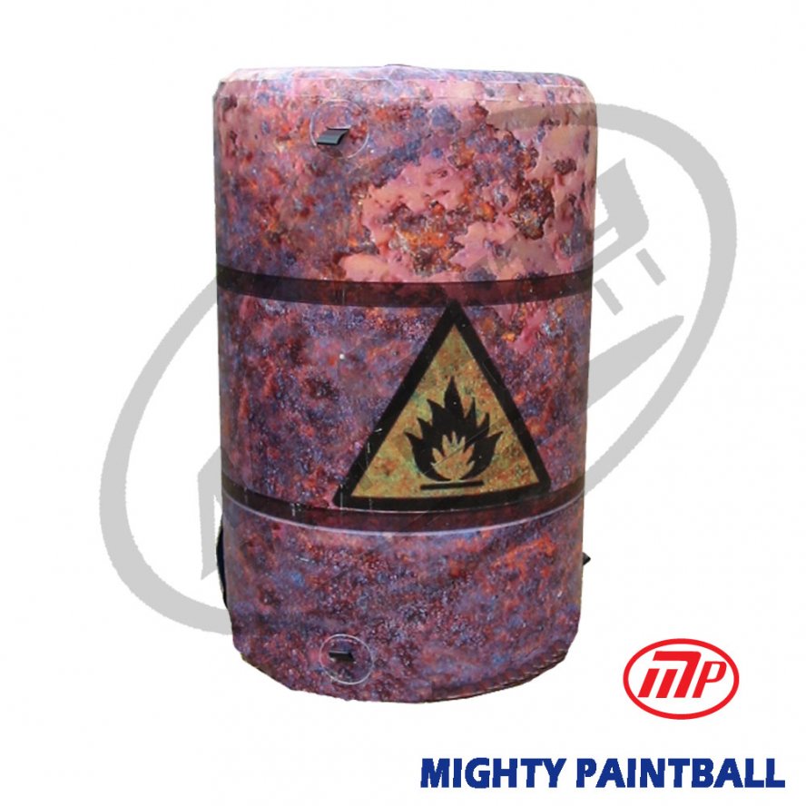 Rusted Oil Barrel (40" H' x 25" D') shape Smart-BunkerTM Digitally-printed color skin; Made from commercial grade, 23oz gauge, mesh reinforced, double-side coated PVC. Equipped with PATENTED Smart-ValveTM for easy handling of overinflation and auto pressure release, exclusively from Mighty Paintball. Warranty - 12-month limited warranty Online product user guide Digitally printer surface is for overall visual effect only. The surface will show folding and/or scratch lines due to the production process, which is unavoidable.