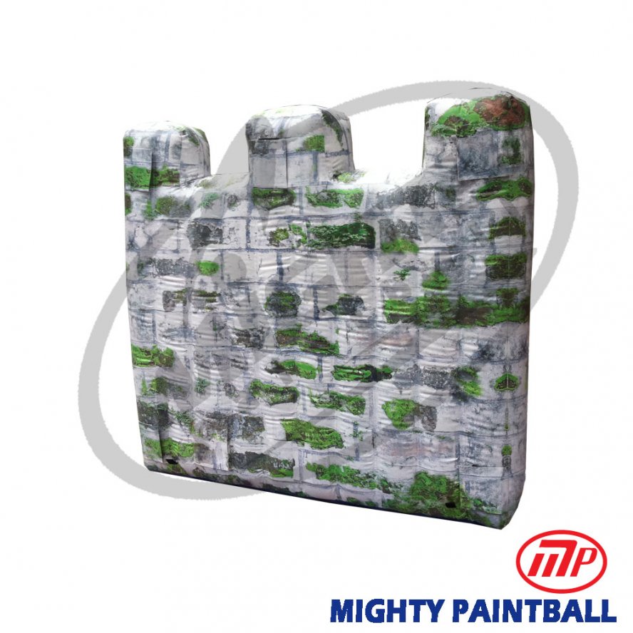Wall G - Castle Wall Panel (6' H, 6.5' W) Smart-BunkerTM Digitally-printed color skin; Made from commercial grade, 23oz gauge, 1000D mesh reinforced, double-side coated PVC. Equipped with PATENTED Smart-ValveTM for easy handling of overinflation and auto pressure release, exclusively from Mighty Paintball. The universal interlocking mechanism is compatible with other wall panels. Click HERE to see how you can create your own shape combination; Warranty - 12-month limited warranty Online product user guide Digitally printer surface is for overall visual effect only. The surface will show folding and/or scratch lines due to the production process, which is unavoidable.